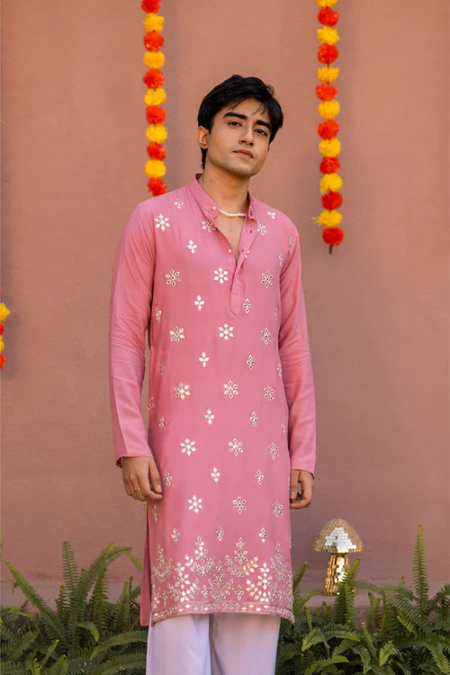 Men’s Pink Embroidered Festive Kurta – Premium Wear